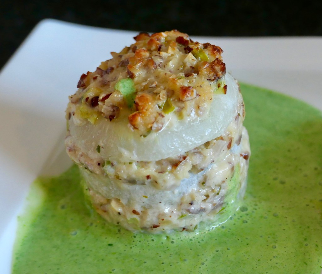 Ein sehr schönes vegetarisches Gericht von Christoph Schuch vom Restaurant Vestibül. Der Kohlrabi kann als Hauptspeise serviert werden oder als Beilage, dann würde ich die Türmchen niedriger machen. In jedem Fall ein kulinarisches Highlight. Gefunden habe ich dieses Rezept im Kochsalon von Martina Hohenlohe und realistisch adaptiert.
